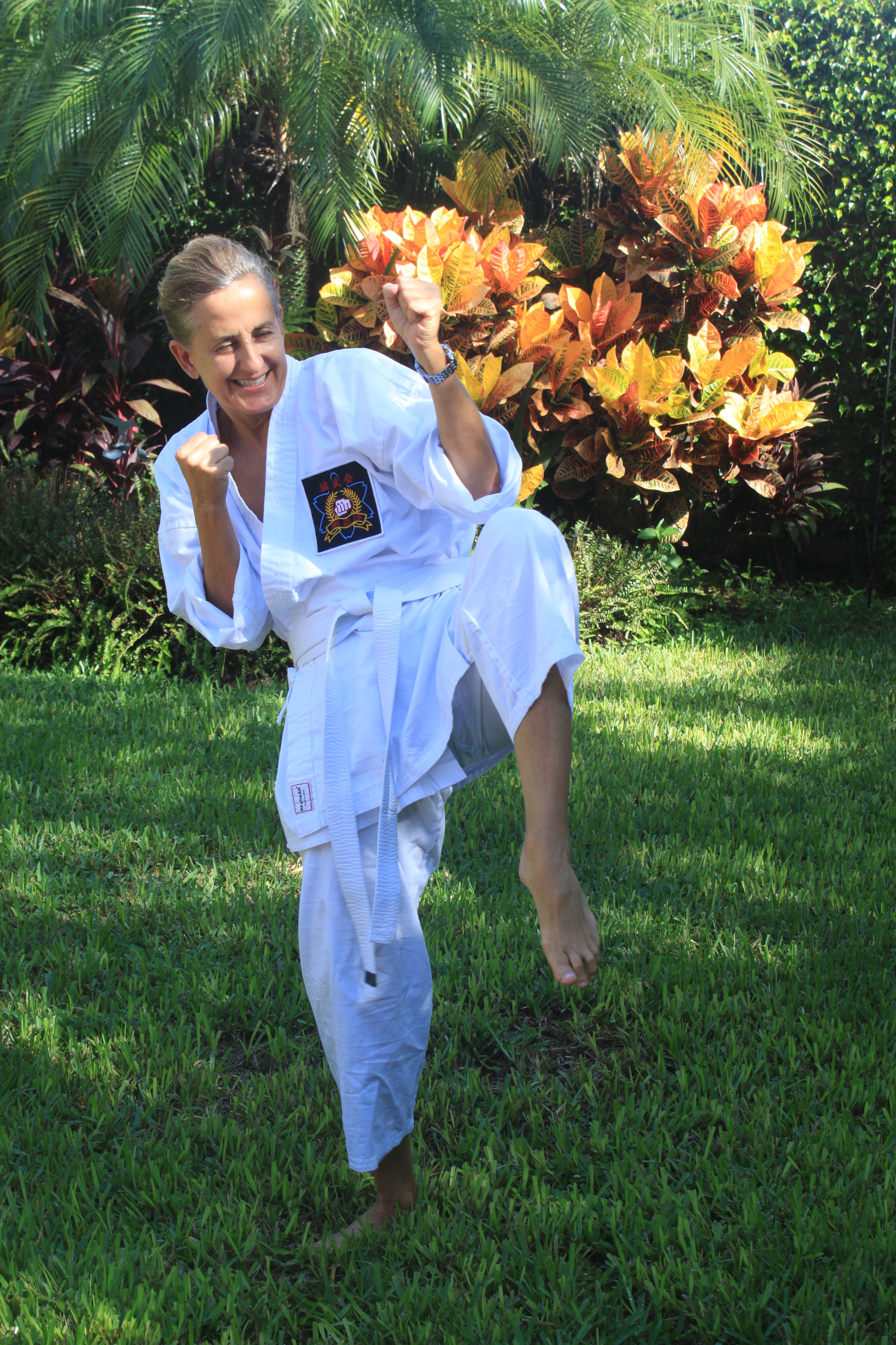 It is Week Four in Training . Rick and I don our gis and head to the “dojo” to study karate. They say karate is mental and spiritual training that teaches courtesy, cooperation and patience. The necessary traits to help us function in society. But like everything we do in life, the most fascinating part is the people you meet along the way.