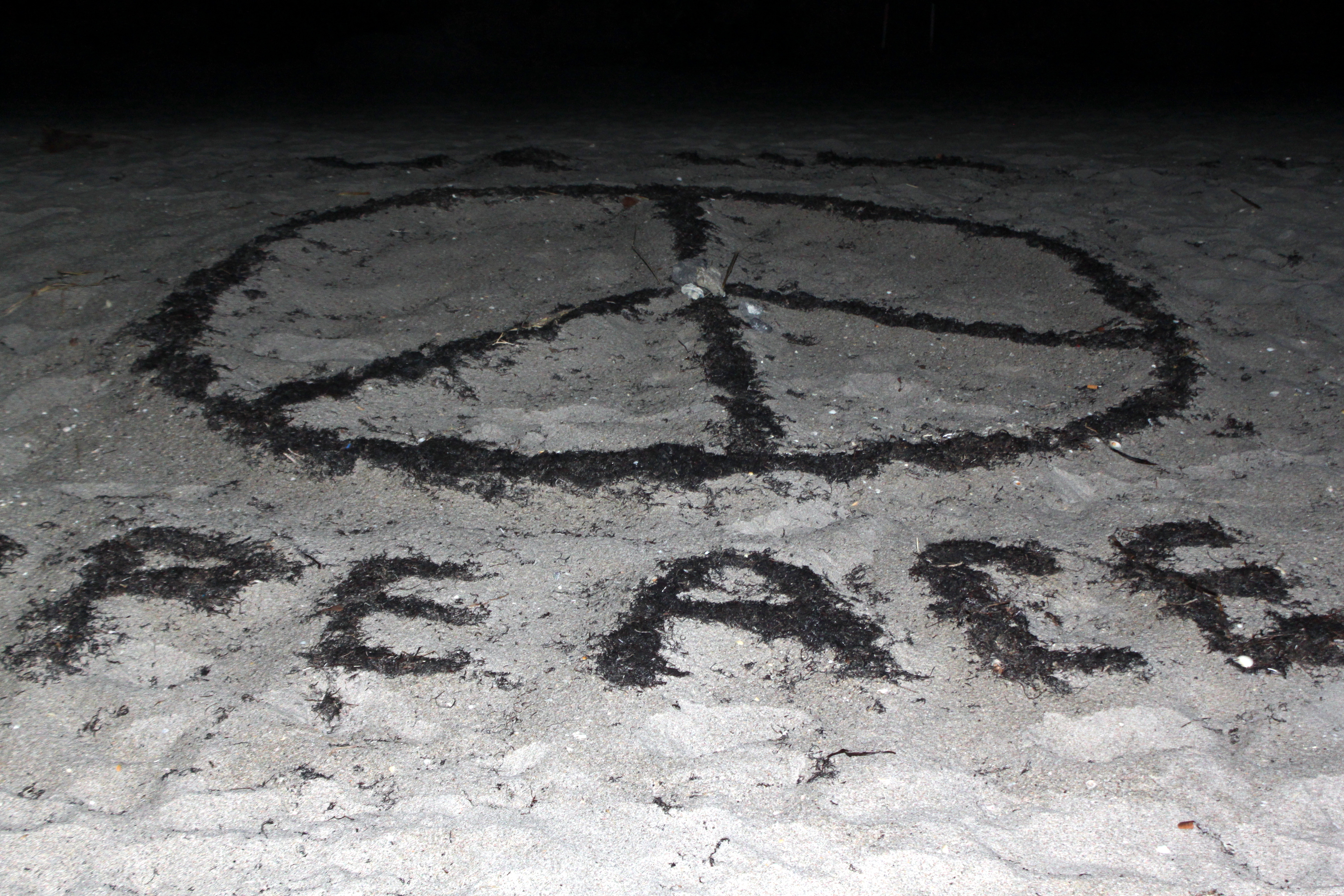 It is uplifting to see how creative people use idle time. While hoping to catch a view of these massive reptiles nest, a group creates a positive message with seaweed for the turtles–We like Peace. The turtle’s nesting season is coming to a close.