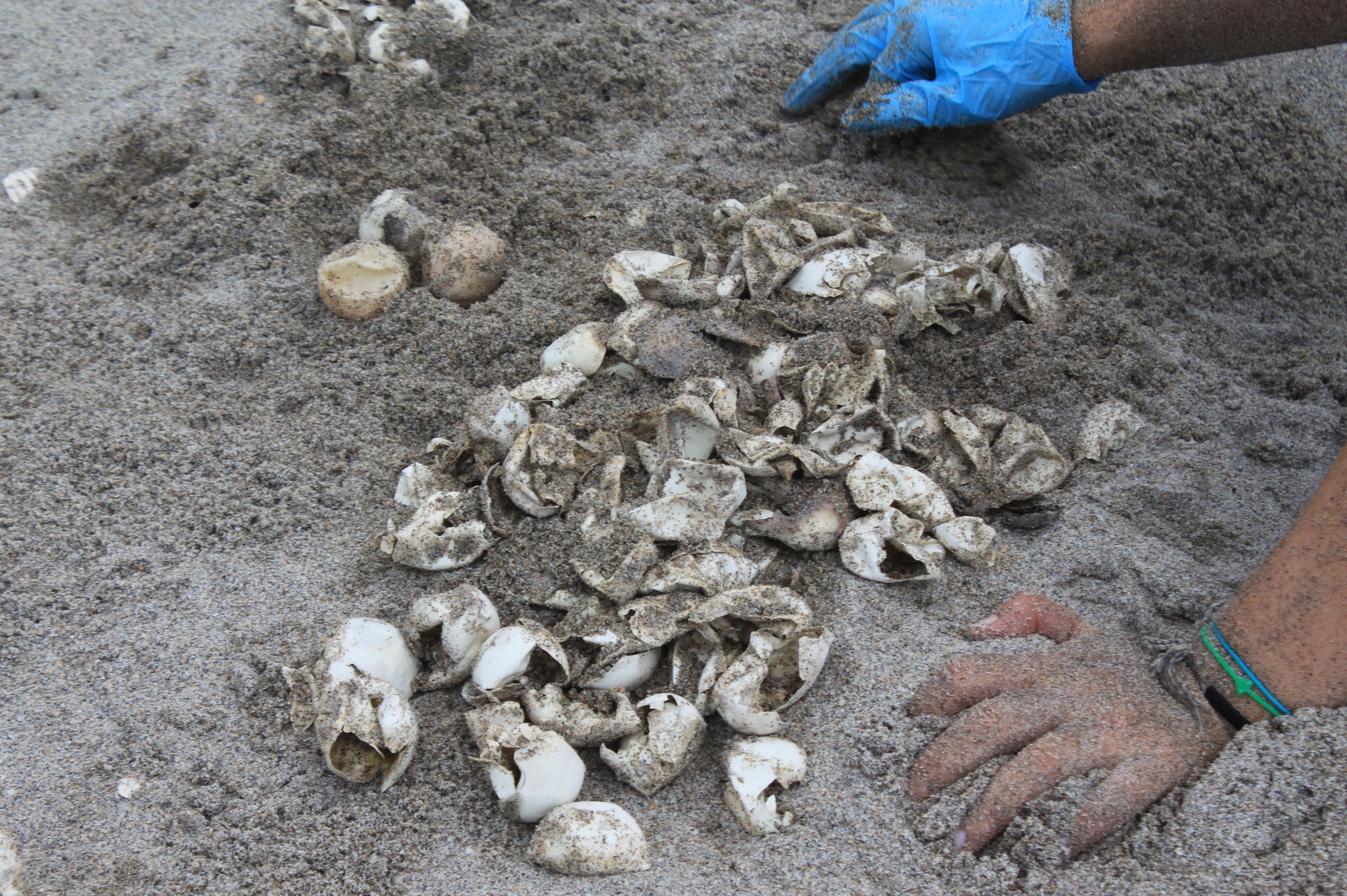 They also incorporate a nest excavation program. Following Florida Fish and Wildlife Conservation Commission’s strict regulations and protocols on egg excavation, the biologists hand dig into nest until they reach “the clutch”. Each clutch contains anywhere from 80-150 eggs.