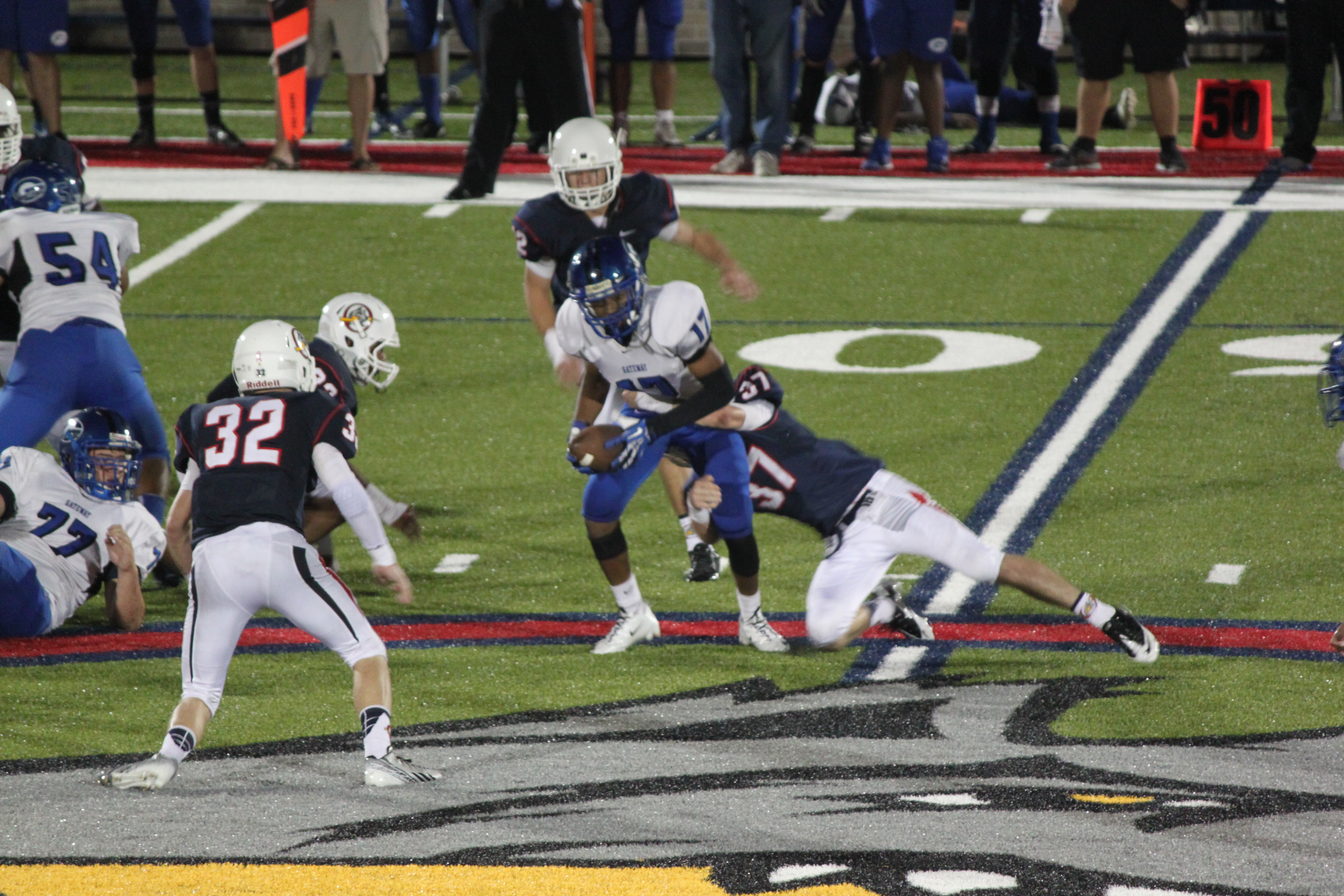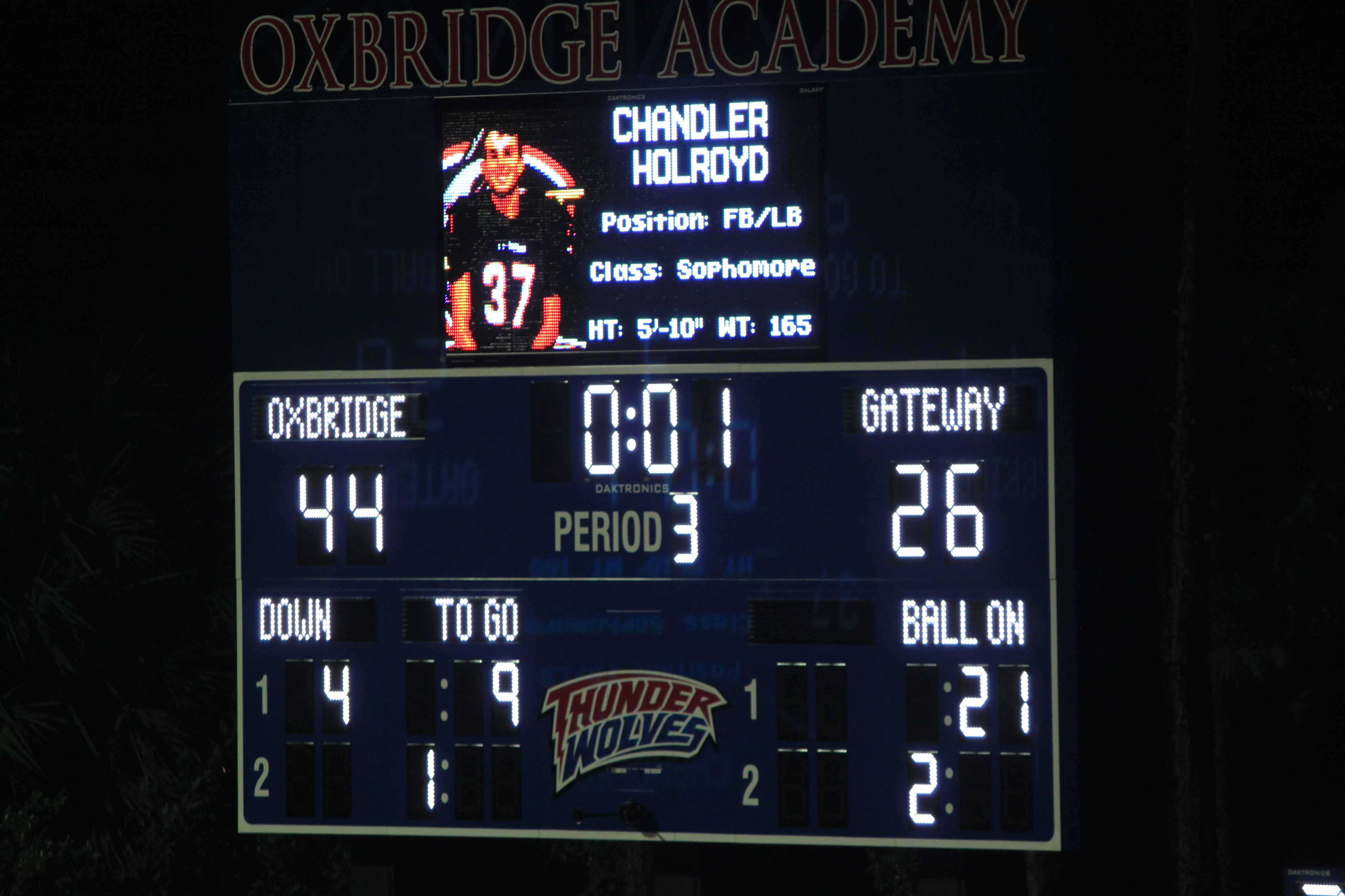 It was the perfect evening–breezy and cool and Oxbridge Academy defeated Gateway Charter (60-26 ) under Friday night lights.
